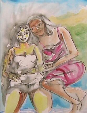 Sister3- carlo haebe -aquarelle- water colour. sie hoeren den song : amadeus von der cd: psychoterrapi alle cd s elephants music carl häbe