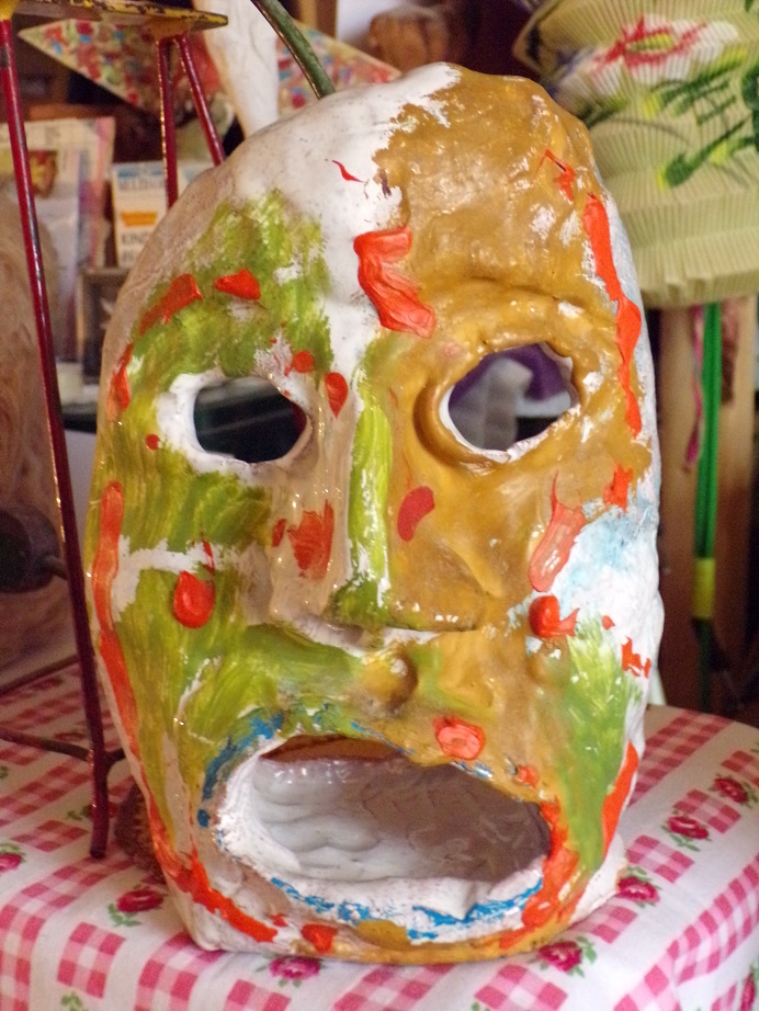 15x 20 x 7 cm , ton glasiert . oil farbe.