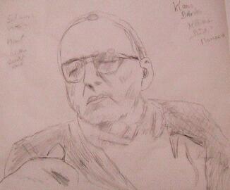 frei nach michelangelo, the hero of art ,same as da vinci , working 24 hours. art for kings, for pope,papst, god, kirche, system, money.rahmen,. klaus barski, art portrait , bleistiftzeichnung 30x40cm. volle kanne zdf.10 jahre jubel.